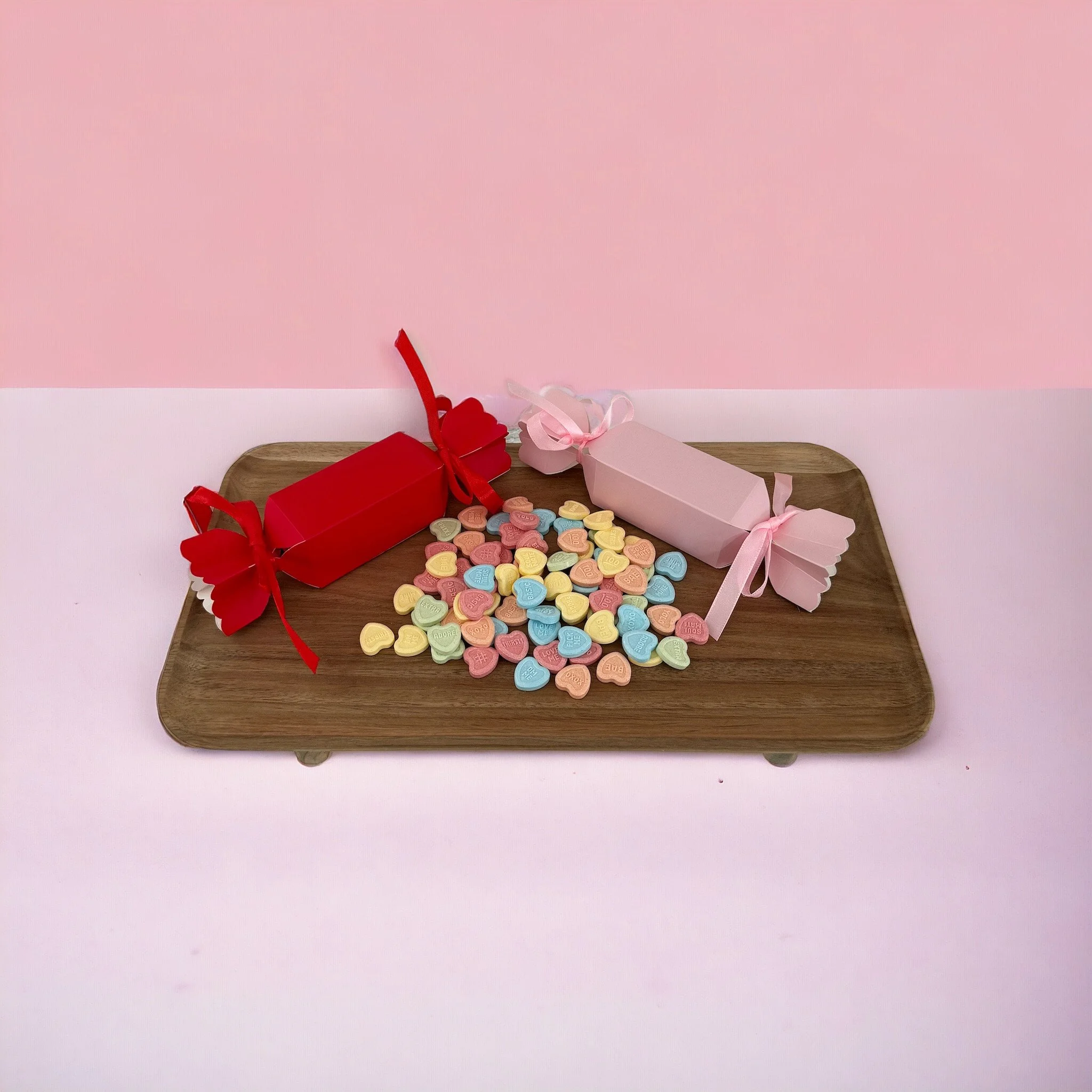 Give someone some whimsy this Valentine’s Day with our Conversation Hearts Sweetheart Box. Choose either a red or pink box.
